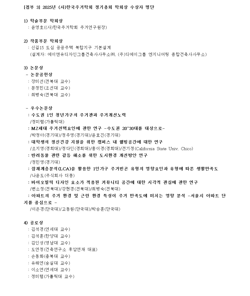 3. 정기총회 학회상 수상자 명단.