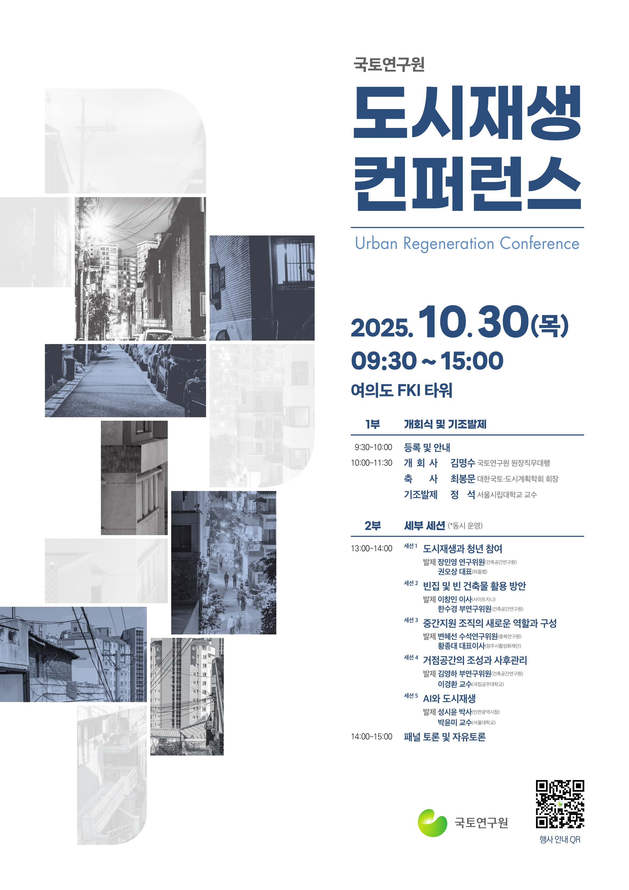 국토연구원에서 10/30(목) 2025 도시재생컨퍼런스 행사를 개최하고자 합니다.
