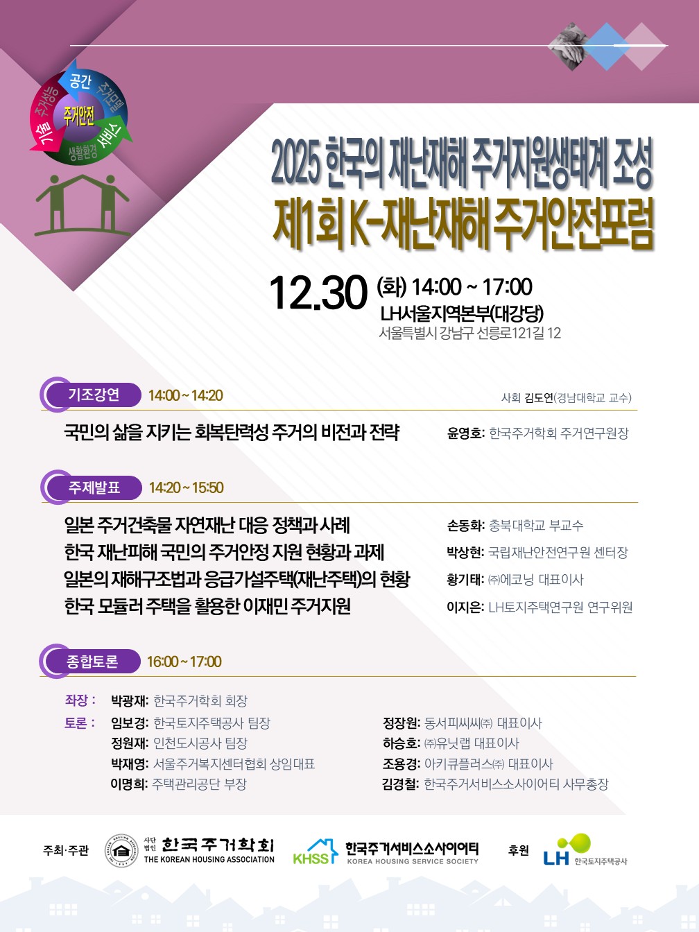 ■ 일 시: 2025년 12월 30일 (화) 14:00 ~ 17:00 ■ 장 소: LH서울지역본부(대강당) (서울특별시 강남구 선릉로121길 12)